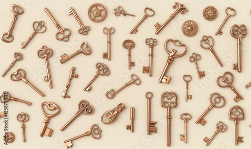 © sergio, Naklejka premium Vintage keys. AI.