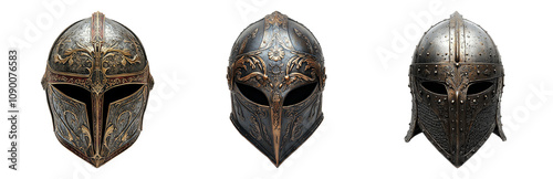 © muji, Fototapeta premium Vintage Knight Helmets with Intricate Designs. Isolated on transparent background