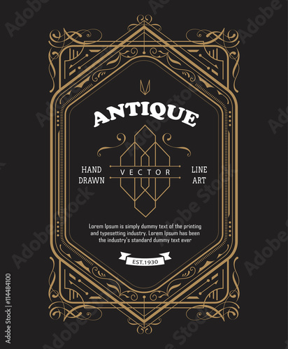Obraz premium Vintage label design antique frame border engraving retro vector
