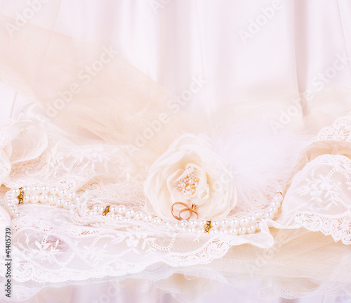© Forewer, Fototapeta premium Vintage lace with flowers on white background