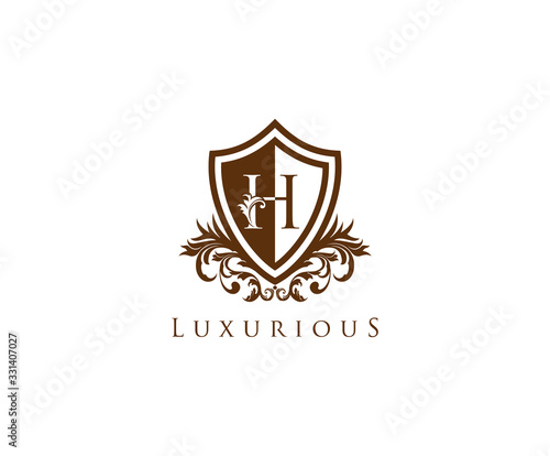 Fototapeta premium Vintage Letter H Logo. Shield H Letter Design Vector with shield shaper and...