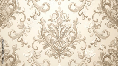 © jiacheng, Fototapeta premium Vintage light beige damask pattern background vector in flat illustration style for presentation and decorative use