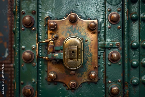© Valentin, Fototapeta premium Vintage Lock on a Weathered Door with Rusty Details