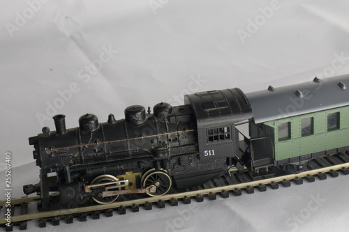 © Miros, Naklejka premium Vintage locomotive pulling wagon (toy miniature 65:1) from private collection