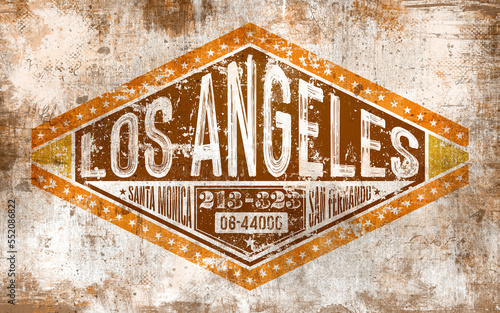 Fototapeta premium Vintage Los Angeles sign with grunge and textured elements.