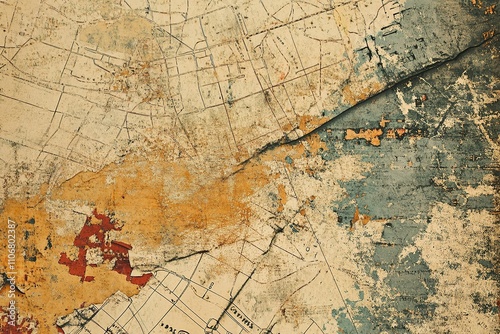 © Tatyana, Naklejka premium Vintage map collage with aged textures and muted tones