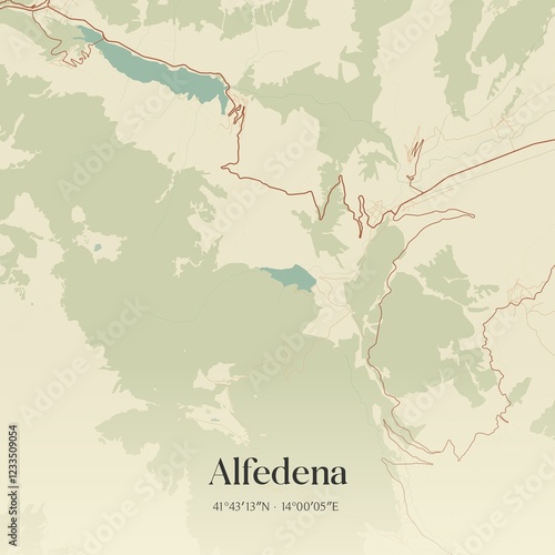 © Rezona, Obraz premium Vintage map of Alfedena, Italy.