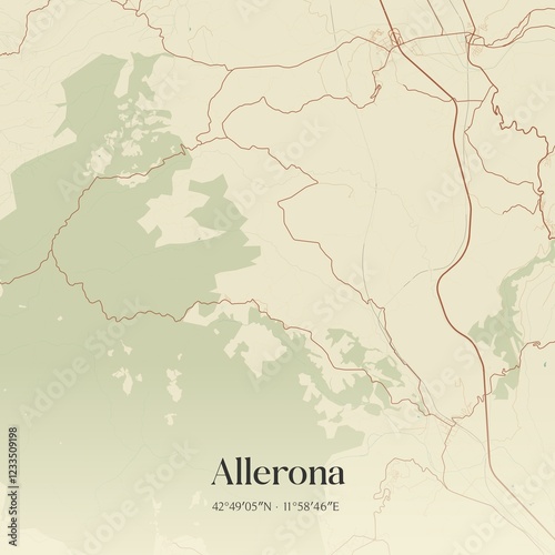 © Rezona, Obraz premium Vintage map of Allerona, Italy.