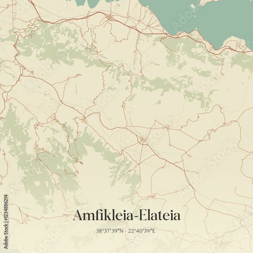 © Rezona, Obraz premium Vintage map of Amfikleia-Elateia, Greece.