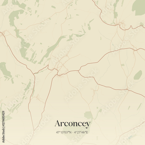 © Rezona, Obraz premium Vintage map of Arconcey, France.