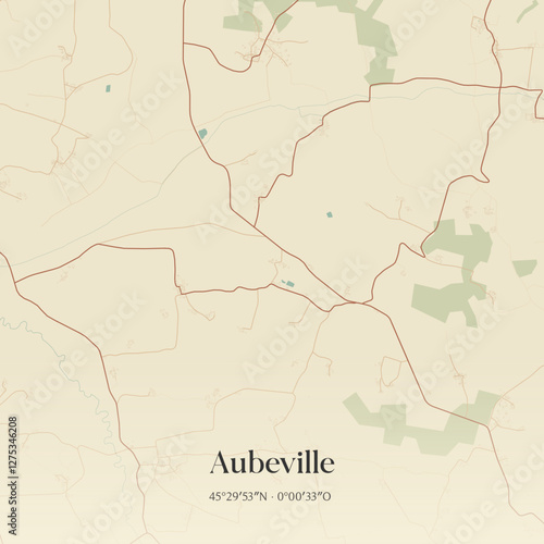 © Rezona, Obraz premium Vintage map of Aubeville, France.