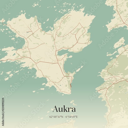Obraz premium Vintage map of Aukra, Norway.