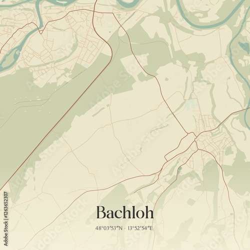 © Rezona, Fototapeta premium Vintage map of Bachloh, Austria.