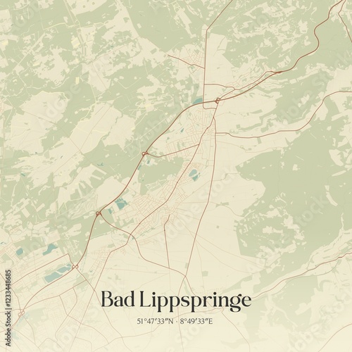 © Rezona, Fototapeta premium Vintage map of Bad Lippspringe, Germany.