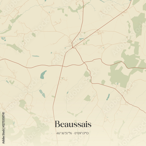 © Rezona, Fototapeta premium Vintage map of Beaussais, France.