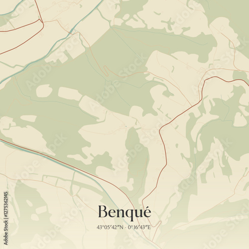© Rezona, Obraz premium Vintage map of Benqué, France.