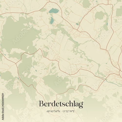 © Rezona, Fototapeta premium Vintage map of Berdetschlag, Austria.