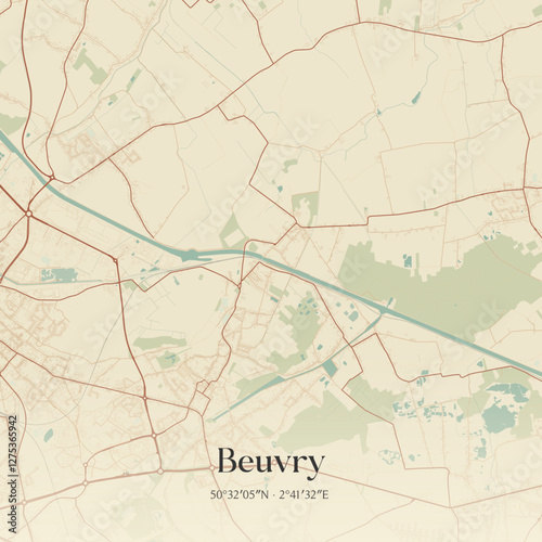 © Rezona, Obraz premium Vintage map of Beuvry, France.