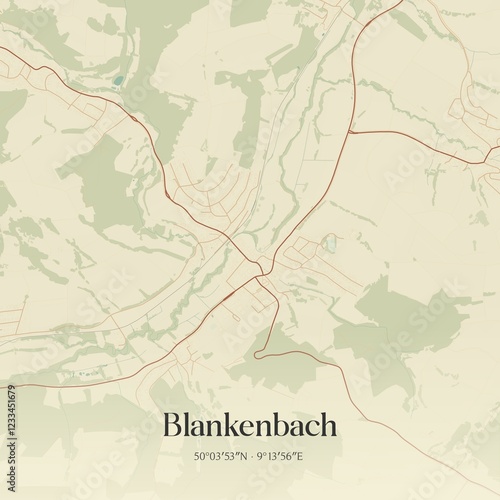 © Rezona, Obraz premium Vintage map of Blankenbach, Germany.