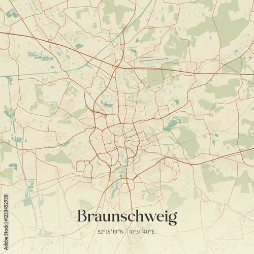 © Rezona, Fototapeta premium Vintage map of Braunschweig, Germany.