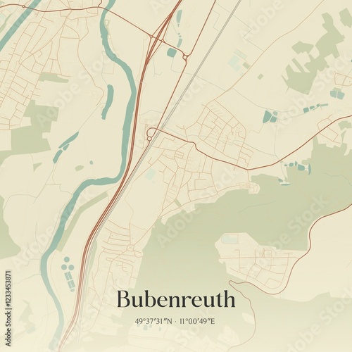 © Rezona, Obraz premium Vintage map of Bubenreuth, Germany.
