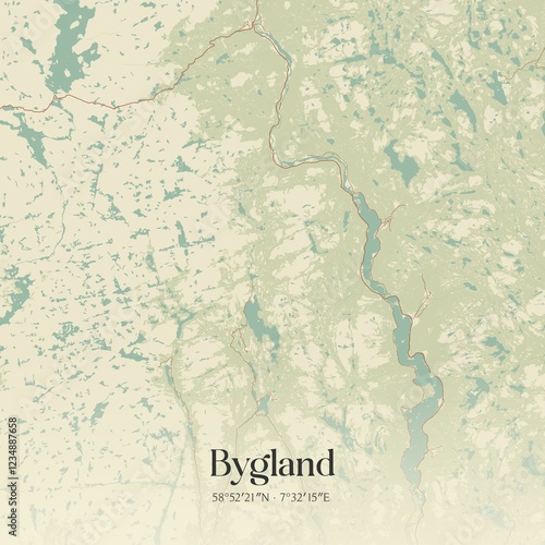 © Rezona, Fototapeta premium Vintage map of Bygland, Norway.