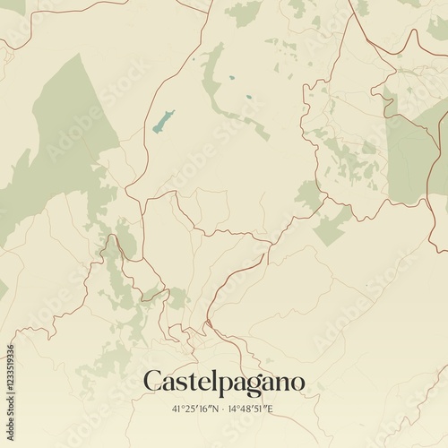 © Rezona, Fototapeta premium Vintage map of Castelpagano, Italy.