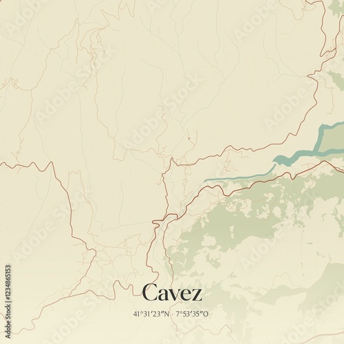 © Rezona, Obraz premium Vintage map of Cavez, Portugal.