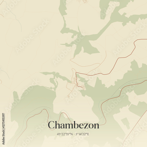 © Rezona, Obraz premium Vintage map of Chambezon, France.