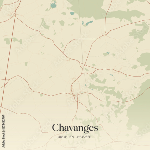 © Rezona, Obraz premium Vintage map of Chavanges, France.