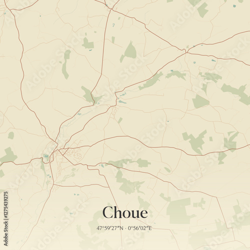 © Rezona, Obraz premium Vintage map of Choue, France.