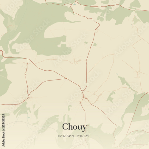 © Rezona, Obraz premium Vintage map of Chouy, France.