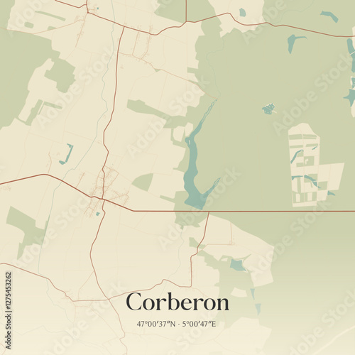 © Rezona, Obraz premium Vintage map of Corberon, France.