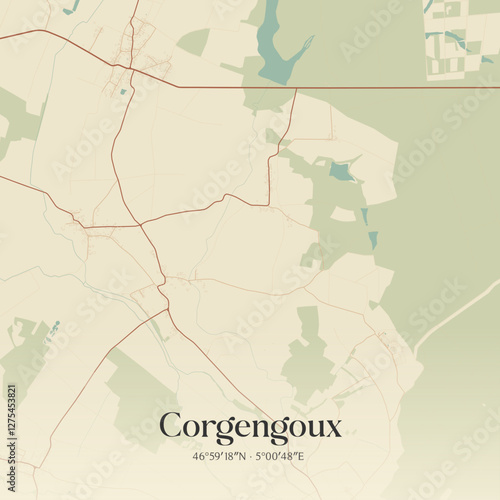 Obraz premium Vintage map of Corgengoux, France.