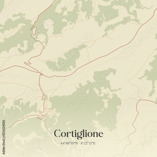 © Rezona, Obraz premium Vintage map of Cortiglione, Italy.