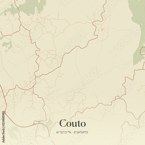 © Rezona, Obraz premium Vintage map of Couto, Portugal.