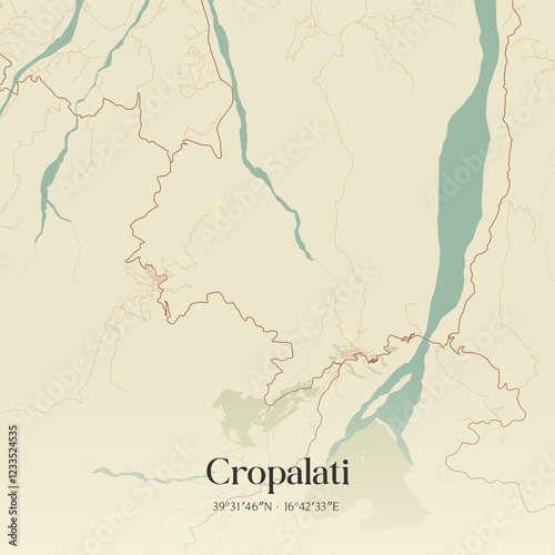 © Rezona, Obraz premium Vintage map of Cropalati, Italy.