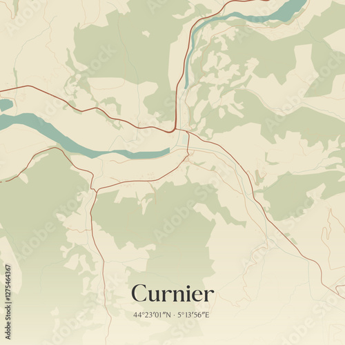 © Rezona, Obraz premium Vintage map of Curnier, France.