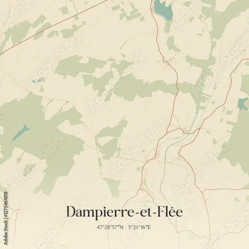 © Rezona, Obraz premium Vintage map of Dampierre-et-Flée, France.