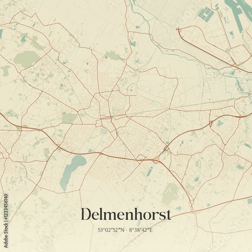 © Rezona, Fototapeta premium Vintage map of Delmenhorst, Germany.