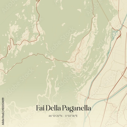 © Rezona, Fototapeta premium Vintage map of Fai Della Paganella, Italy.