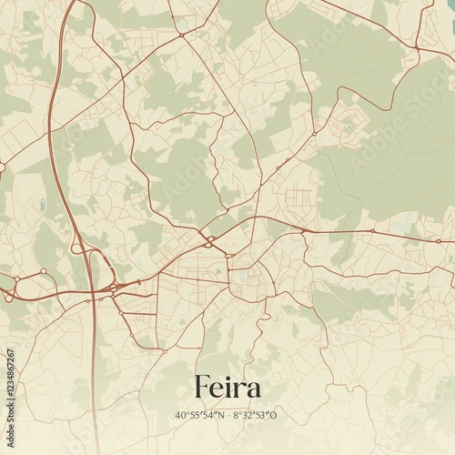 © Rezona, Obraz premium Vintage map of Feira, Portugal.