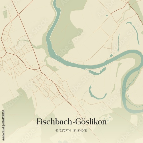 © Rezona, Fototapeta premium Vintage map of Fischbach-Göslikon, Switzerland.