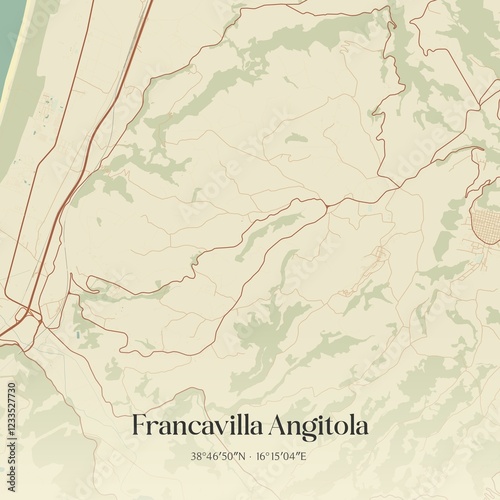 © Rezona, Obraz premium Vintage map of Francavilla Angitola, Italy.