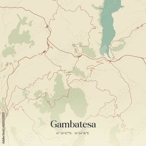 © Rezona, Fototapeta premium Vintage map of Gambatesa, Italy.