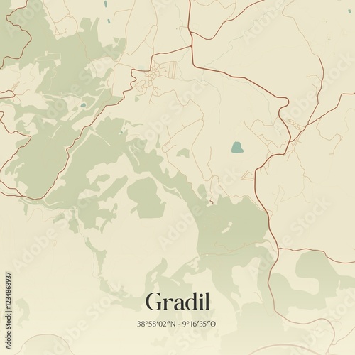 © Rezona, Obraz premium Vintage map of Gradil, Portugal.