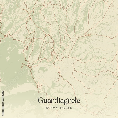 © Rezona, Obraz premium Vintage map of Guardiagrele, Italy.