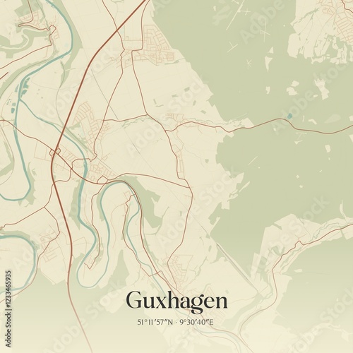 © Rezona, Fototapeta premium Vintage map of Guxhagen, Germany.