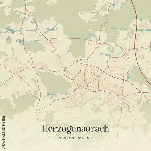 © Rezona, Naklejka premium Vintage map of Herzogenaurach, Germany.
