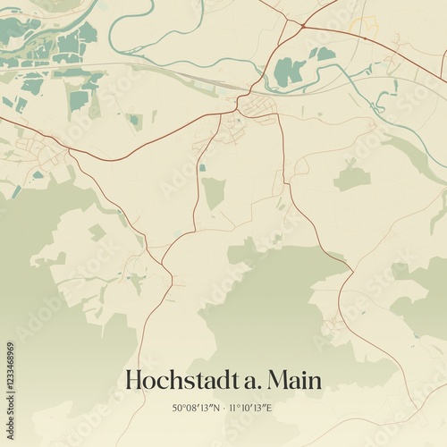 © Rezona, Fototapeta premium Vintage map of Hochstadt a. Main, Germany.